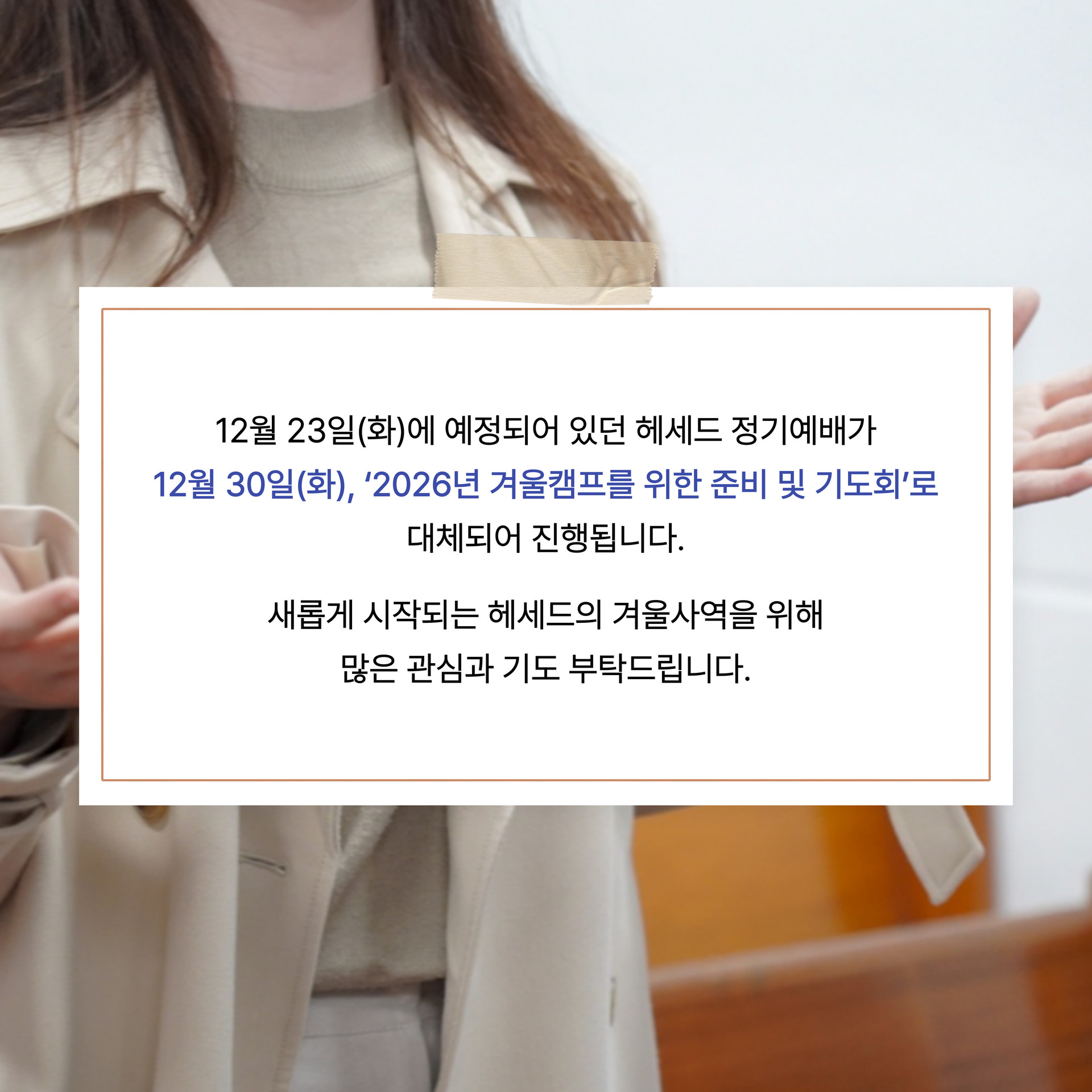 12월 30일 (화), '2026년 겨울캠프를 위한 준비 및 기도회'로