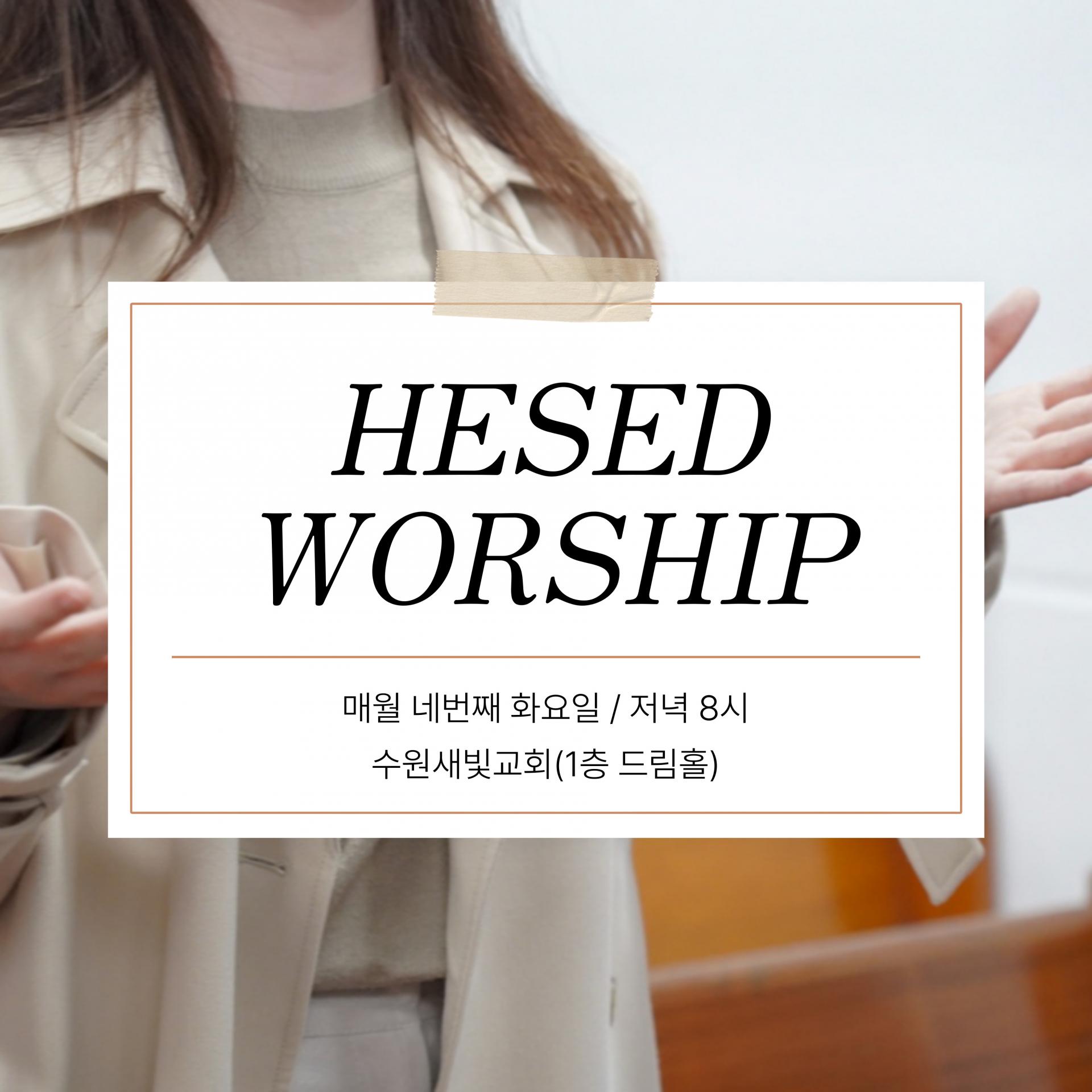 헤세드 정기예배는 매월 네번째 화요일 저녁 8시에 있습니다.